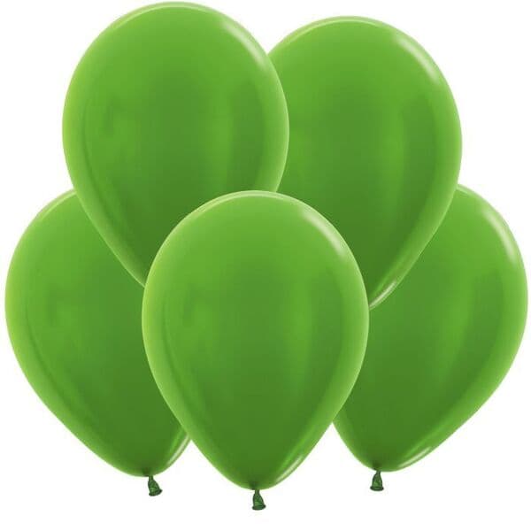 Изготовлены из 100% натурального латекса, шары Metallic обладают эффектом металлического блеска и представлены в различных оттенках, включая светло зеленый. Размер 12 дюймов (30 см) — самый популярный среди аэродизайнеров, так как идеально подходят для создания фонтанов из шаров, наполненных гелием, а также для оформления арок, гирлянд и акцентных элементов.